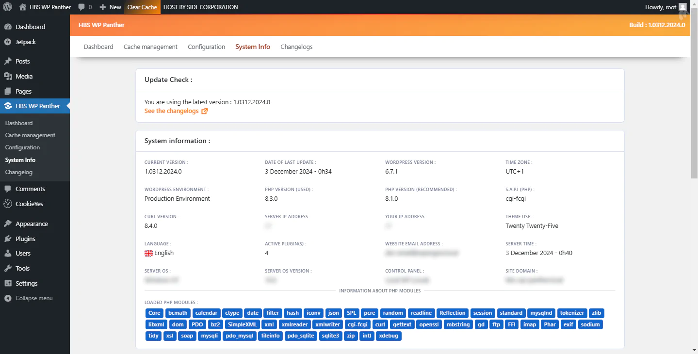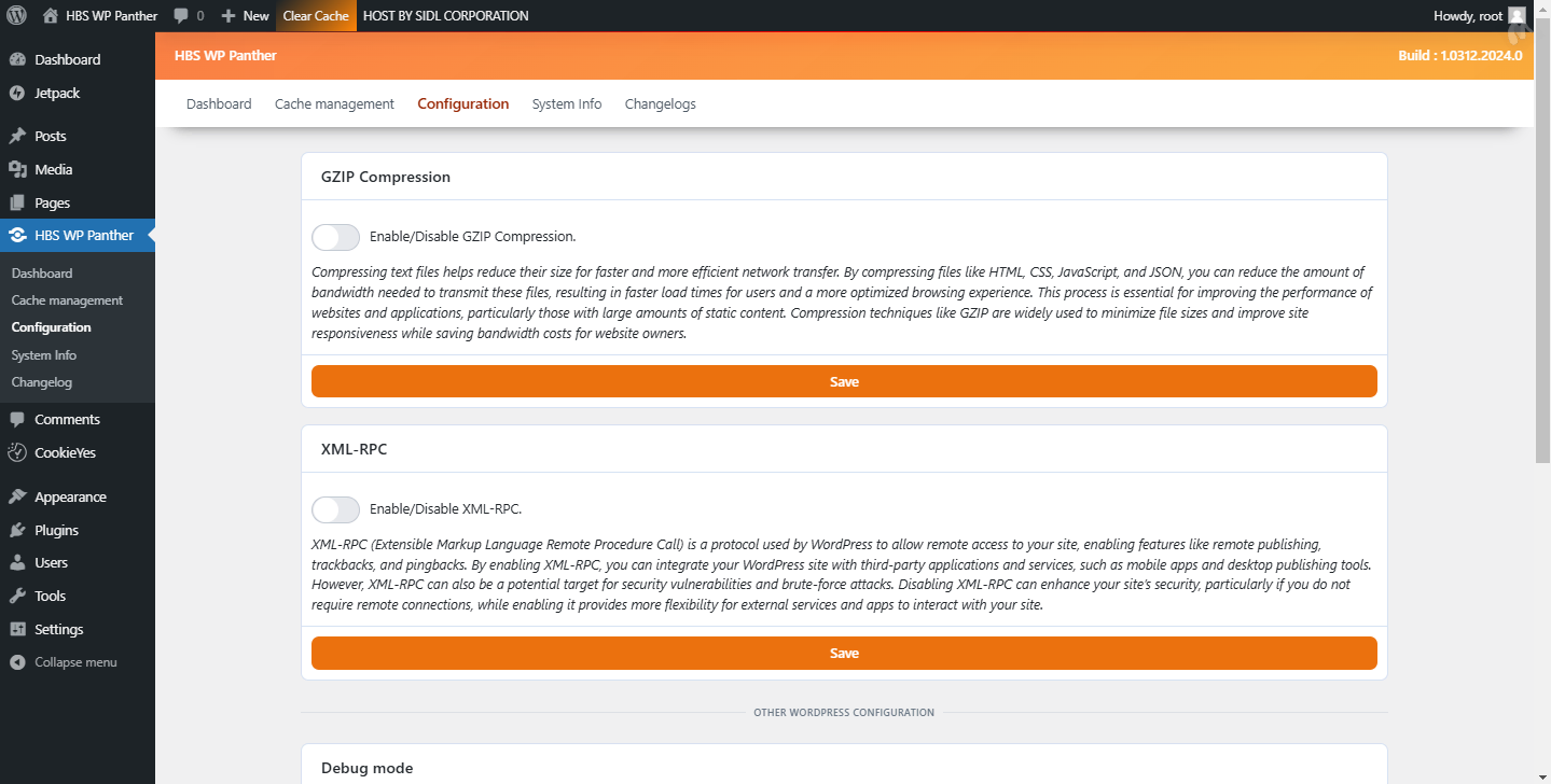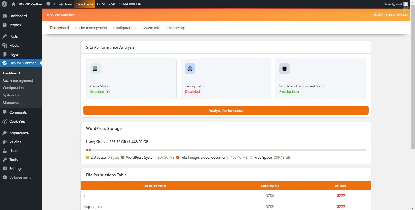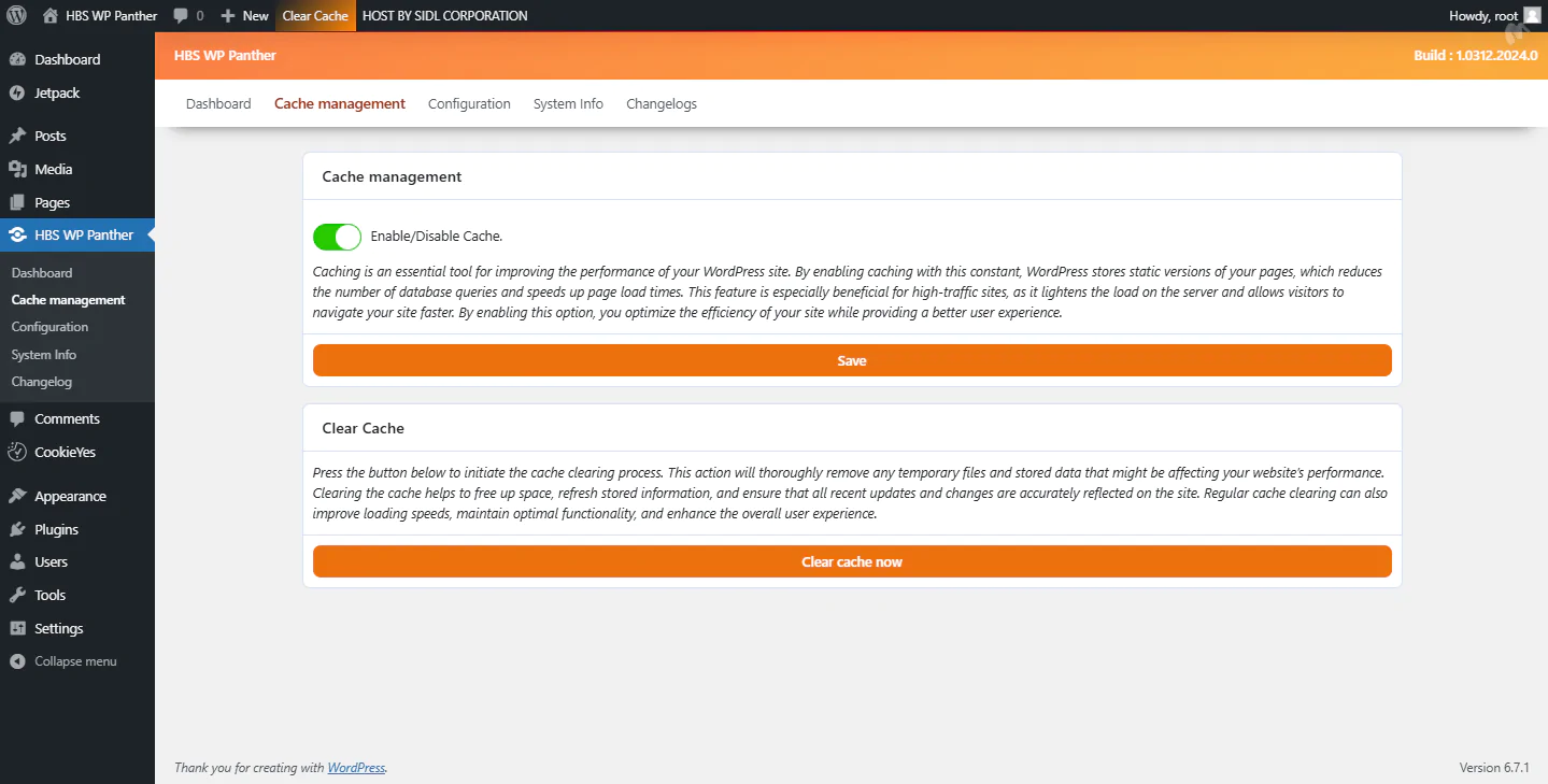 HBS WP Panther is an innovative plugin designed to optimize the performance of your WordPress site by simplifying the cache management process. Developed by HOST By SIDL CORPORATION, this powerful plugin offers an effective solution to keep your site smooth and responsive, ensuring an optimal user experience.